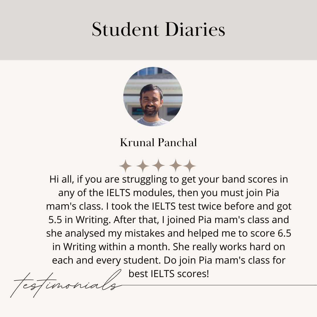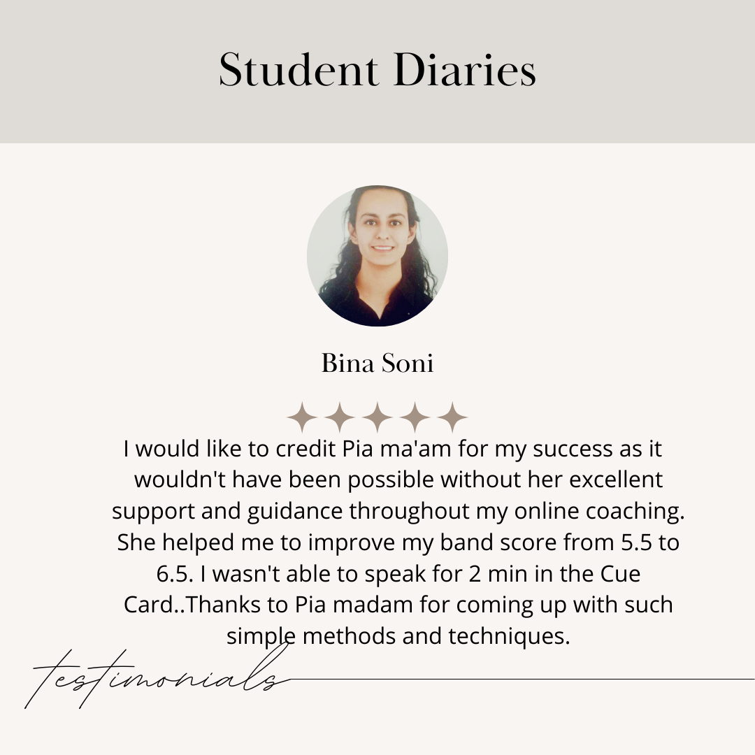 Hi, I’m Pia , your AI IELTS Coach, an Mcom gold-medallist turned IELTS Coach. With my passion for transforming students, I’m on a mission to redefine the way students learn English and crack their IELTS Test with my innovative teaching methods. I have founded IELTS Success Hub to fix this problem.